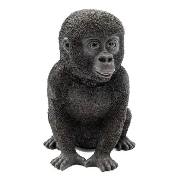 Ligt jouw hart in Afrika en hou je van de indrukwekkende dieren die er thuis horen, dan zal dit beeld je zeker kunnen bekoren. Deze miniatuur baby gorilla ziet er bijzonder innemend uit en is levensecht weergegeven.