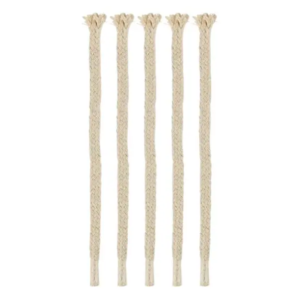 Set van vijf vervanglonten voor de Bamboe tuinfakkel. Elke lont is vervaardigd uit katoen die bij het aansteken langzaamaan opbrandt. Dankzij het beschermend omhulsel rond de lont, blijft de vlam mooi branden. Handig op winderige dagen.