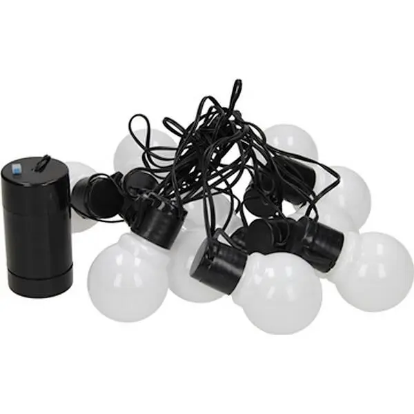 De feestelijke lichtslinger werkt op batterijen zodat hij zowel in jouw tuin, in jouw interieur of in een feestzaal kan gebruikt worden. De slinger bestaat uit 10 witte led lampen en heeft een lengte van 6 meter.