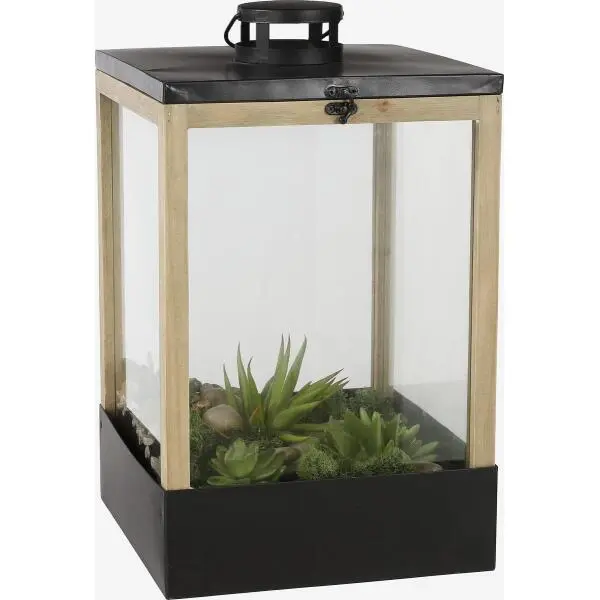 Je kan er dus een mooie kaars in plaatsen of gebruiken als basis voor een groene oase. Dit leuke kasje gemaakt uit sparrenhout in combinatie met zwart metaal voorzien van glazen wanden, zal in elk geval beeldig staan in jouw huiskamer!