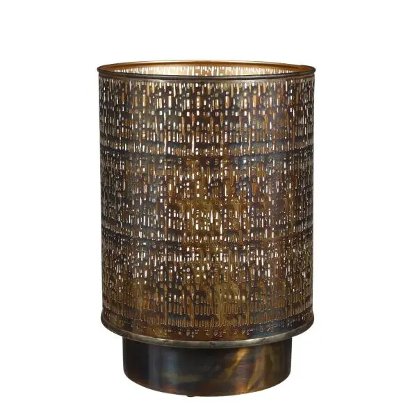 De lantaarn is gemaakt uit metaal met een antiek gouden afwerking. De wanden zijn geperforeerd wat het lichteffect groter maakt.