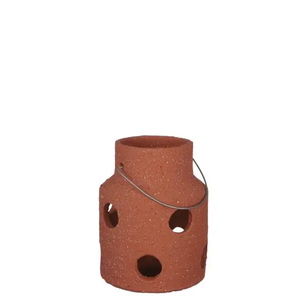 Deze tuinlantaarn is vervaardigd in terracotta en is ideaal om sfeer te brengen op en rond het terras. Zo wordt het buiten nog aangenamer vertoeven samen met familie en vrienden. Het licht en de warmte van de kaars kan zich door de verschillende openingen verspreiden.