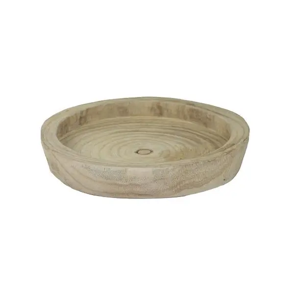 Op zoek naar een element in massief hout om je huiskamer een natuurlijke twist te geven? Dan is deze schaal zeker iets voor jou. De ronde schaal is gemaakt uit paulownia hout en heeft een mooie houtkleur en -tekening. Elke schaal is dan ook uniek in afwerking.