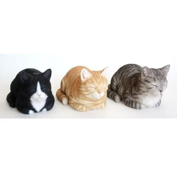 Mooi tuinbeeldje van een dromerige kat, verkrijgbaar in drie verschillende kleuren. Leuk geschenkidee om te geven of te krijgen.