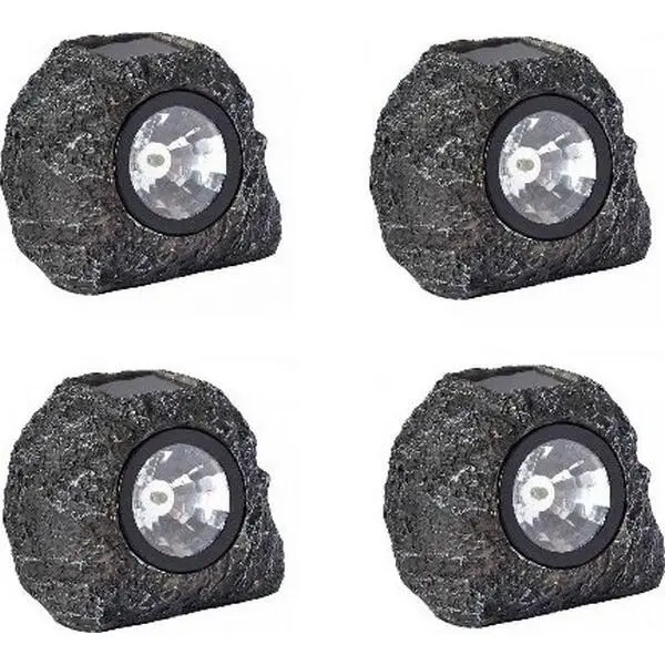 Leuke set tuinlampen in de vorm van 4 stenen of rotsen. Perfect om meer sfeer te brengen in de rotstuin, langs het tuinpad of op het terras, overal kunnen deze lampen voor de nodige sfeer zorgen.