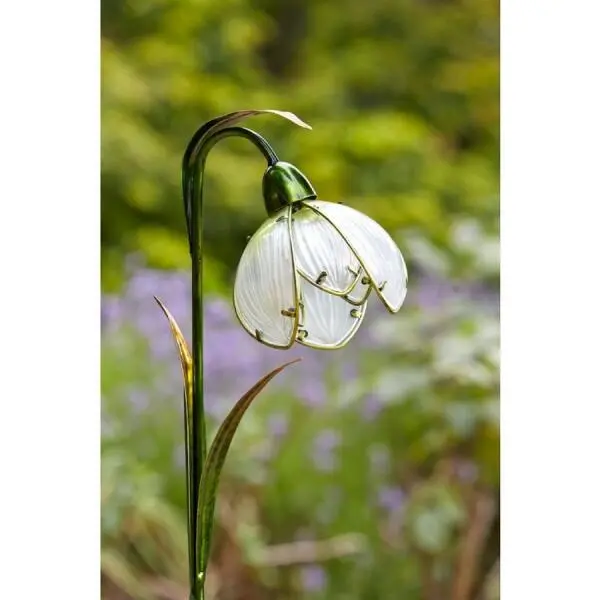 Sneeuwklokjes hebben een opvallend mooie bloemkelk en bij deze tuindecoratie met solarlicht gaat alle aandacht naar de witte glazen bloem. Plaats je deze originele tuinversiering op een zonnige plek in jouw tuin, dan schijnt bij het vallen van de avond een prachtig decoratief licht. De bloemsteel van dit sneeuwklokje draagt een zonnepaneel waarin de batterij oplaadt dankzij zonne-energie.