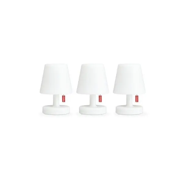 Fatboy Edison the Mini, een set van drie kleine tafellampjes voor binnen en buiten. De draagbare lampjes zorgen met hun warme witte LED-licht voor een sfeervolle verlichting. Stel de gewenste lichtsterkte in met de dimfunctie en set the mood met dit echte een power-trio. Edison the Mini is met zijn hoogte van 15 centimeter het allerkleinste lid van de Edison-familie. Door het compacte formaat kun je de mini-tafellampjes op elke gewenste plek zetten, zowel binnen als buiten.