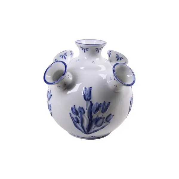 Een mooi vaasje met decoratieve tulpen en voorzien van fijne accenten net zoals bij Delfts Blauw. Kan puur als decoratie gebruikt worden of als vaasje voor kleinere bloemen.